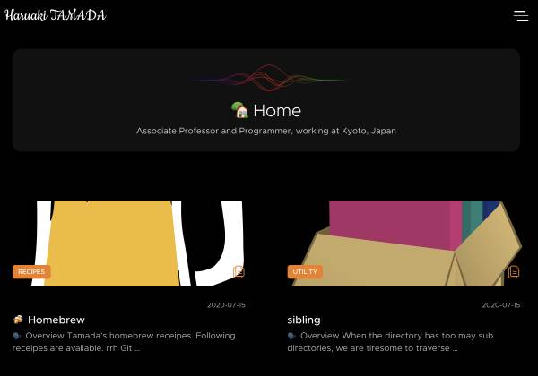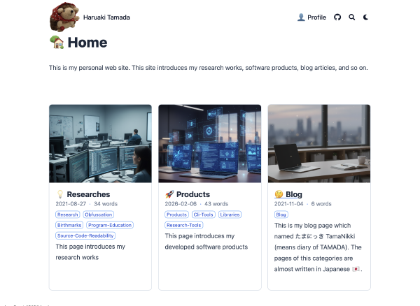 ホームページのデザインを更新した. # ふと思い立って,ホームページのデザインを更新してみた. 作成したプロダクトのデザインは cayman-hugo-theme に統一していたので,個人ページも同じテーマを採用してみた.