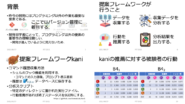 :books: Publications # 宮崎 光,玉田 春昭,CUIツールの開発支援サービスとしての再構築手順の提案”,信学技法,Vol.119,No.246, SS2019-14, pp.7–12, October 2019(熊本). 玉田 春昭,”初学者向けGitHub flow学習支援”,ソフトウェアシンポジウム2019 ワークショップ 討論テーマ(2)実証的ソフトウェア工学によるプログラミング教育とソフトウェア工学教育,August 2019.(東京) Ko Miyazaki, Haruaki Tamada, “Identifying Users in the Bridging Service between Two Different Chat Services using User Icons,” In Proc. HCI International 2019, Digital Human Modeling and Applications in Health, Safety, Ergonomics and Risk Management. Healthcare Applications, (HCII2019), Lecture Notes in Computer Science, vol 11582, 24-31 July 2009. (Orlando, FL, USA). 柳川 龍太郎,西尾 泰介,玉田 春昭,”システム開発初心者のためのGitHub flow学習支援システム”,第25回ソフトウェア工学の基礎ワークショップ(FOSE2018),November 2018(函館,ポスター発表) 宮崎 光,玉田 春昭,”異なるチャットシステム間でメッセージ送信可能なシステムの構築”,第17回情報科学技術フォーラム(Forum on Information Technology 2018)(FIT 2018),September 2018.(福岡) 西尾 泰介,柳川 龍太郎,玉田 春昭,”初学者を対象としたGitHub flow支援ボット”,ソフトウェアシンポジウム2018 ワークショップ 討論テーマ(4)ソーシャルコーディングのための実証的ソフトウェア工学,September 2018.(東京) 玉田 春昭,”ソーシャルコーディングプラットフォーム上のサービス連携のためのメタボット’‘,ウィンターワークショップ2018,January 2018.(広島) :mag_right: Related Research Topics # Project as a City Mining Software Repository Characteristics of the developers :handshake: Collaborators # K. Matsumoto@NAIST