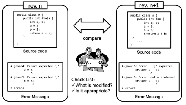 :speaking_head: Overview # It is crucial for educators to understand pitfalls for novice programmers in programming education at computer science course. By giving well-timed advice to students who fall into a pitfall, educators are able to achieve efficient teaching and keep up their students’ motivation. However, so far, it is less well-understood how novice students edit source code and why they fall into a pitfall. In this paper, we analyzed coding patterns of novice students empirically. We collected programming activities by students on exercises of programming course, and then performed qualitative and quantitative analysis. In qualitative analysis, experienced programmers analyzed patterns of the novice programmers manually. In quantitative analysis, we focused on transtions of the edit distance between a source code of each student under development and a correct source code in a programming class. As a result, we confirmed coding patterns of novice programmers in case of falling into pitfalls, and the characteristics of transitions of edit distance metric in the case that novice students had faced difficulty in understanding the exercise.