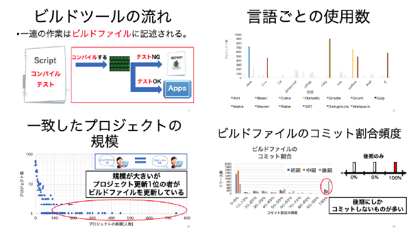 why do the developers update the build files in the project, and how to build the obliging bots for supporting next action. :books: Publications # 鐘ヶ江 由佳,玉田 春昭,畑 秀明,”GitHubにおける言語ごとのビルドファイルの更新理由調査”, 研究報告ソフトウェア工学(SE), Vol. 2017-SE-196, No.28, July 2017. Akira Inokuchi, Haruaki Tamada, Hideaki Hata, and Masateru Tsunoda, “Toward Obliging Bots for Supporting Next Actions,” In Proc. of the 4th International Conference on Applied Computing & Information Technology (ACIT 2016), pp. 183–188, December 2016 (UNLV, Las Vegas, NV, USA). :mag_right: Related Research Topics # Project as a City Characteristics of the developers :handshake: Collaborators # H. Hata@NAIST SE Lab. M. Tsunoda@Kindai University.